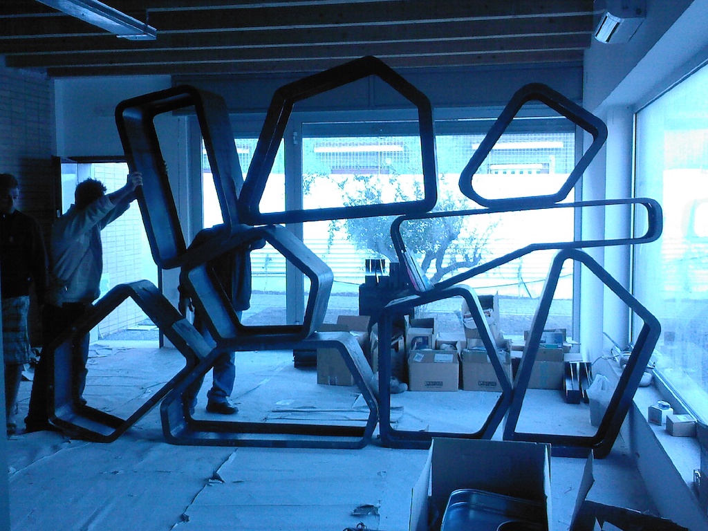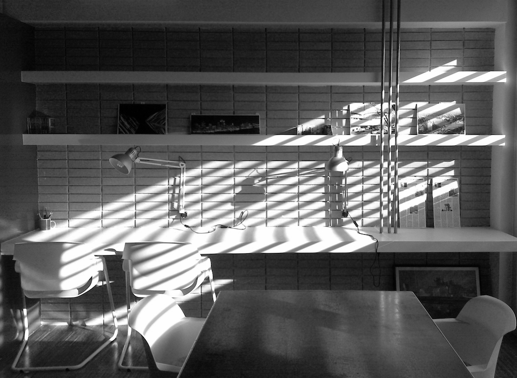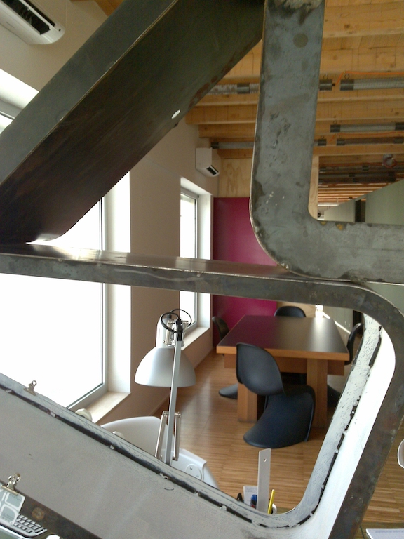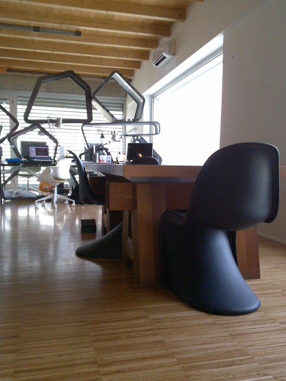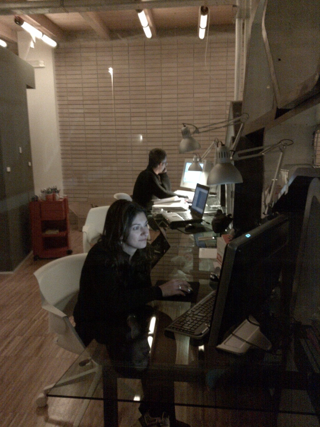 Loft n.2 del Sail Village, lo studio fa parte di un recente progetto di recupero edilizio e ambientale di un ex capannone adibito alla lavorazione di materie plastiche. Oltre all'attività di progettazione nel loft ha sede l'associazione sportiva e servizi per la vela “Med Racing Team” composta da alcuni velisti professionisti conosciuti in campo nazionale e internazionale. In un unico open space sono stati ricavati: gli spazi di lavoro collettivo con 6 postazioni cad articolate attorno ad una struttura in ferro dal disegno fortemente organico, n.2 sale riunioni e gli spazi di servizio con gli archivio, libreria, zona snack e bagno, questi ultimi racchiusi in un involucro in muratura posto con apparente casualità al centro dell'ambiente. Divisori scorrevoli in legno riciclato consentono all'occorrenza la separazione degli ambienti di rappresentanza e dell'ingresso all'unità.